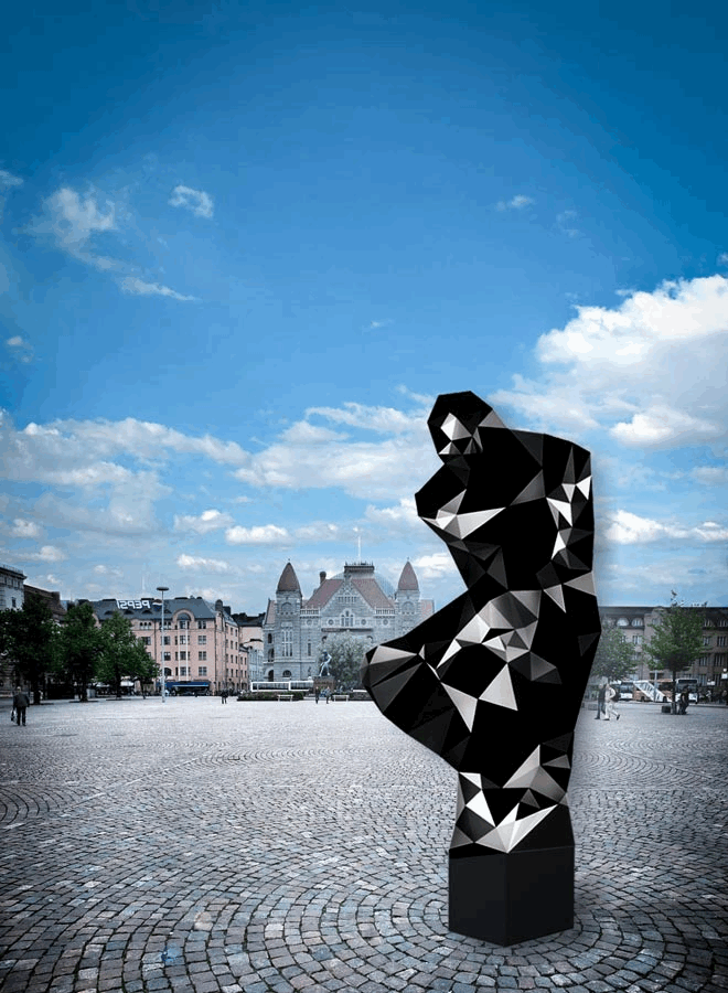 Re-thinker is a mix of interactive installation and a monument that proposes a dialogue between society, arts, and technology. The artwork acts as a thermometer for control of what has been called an information overload society.