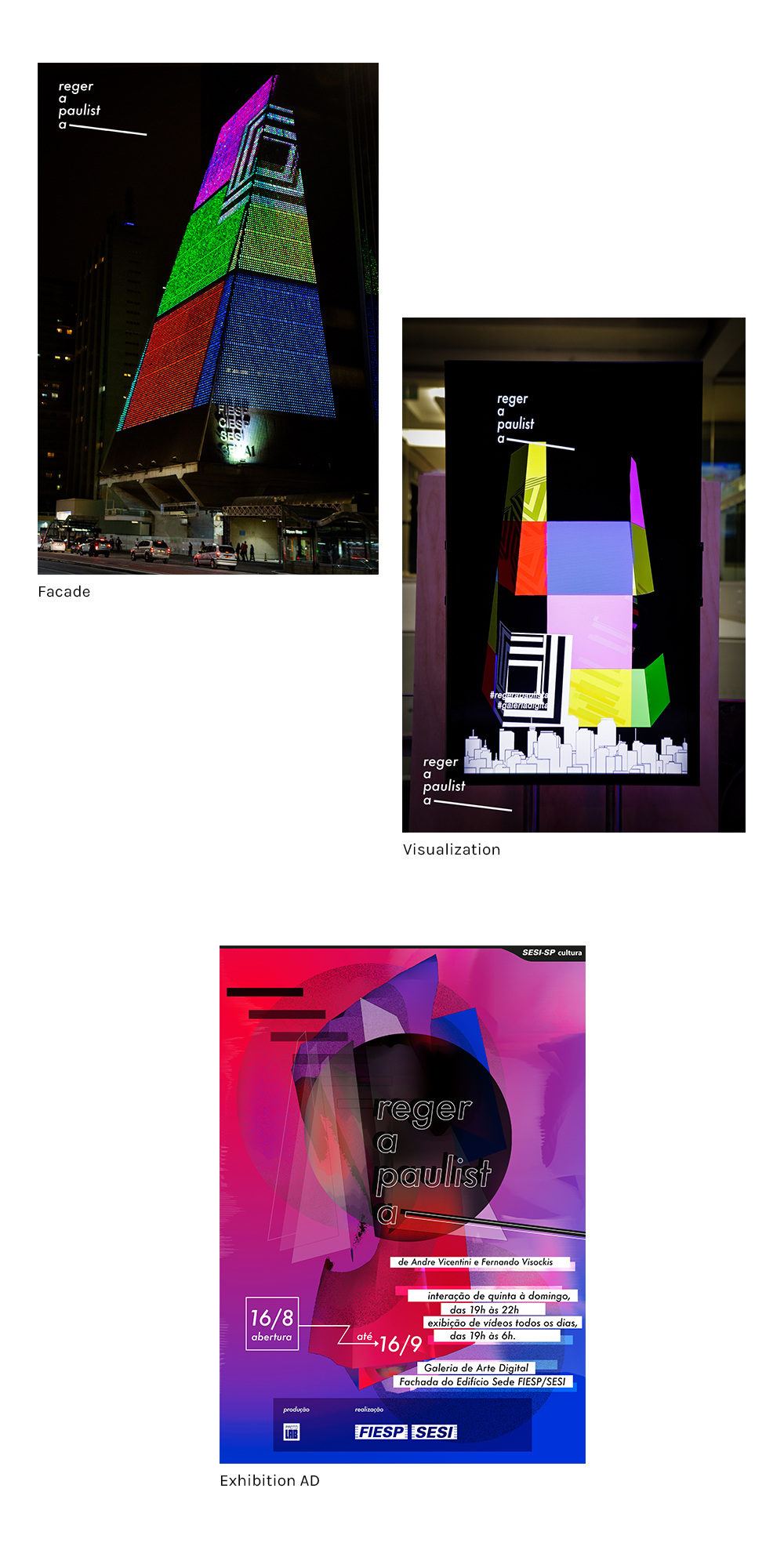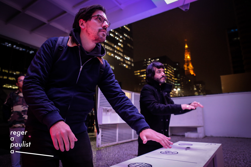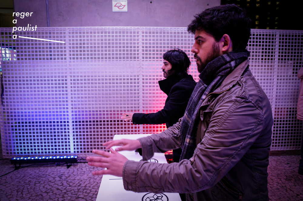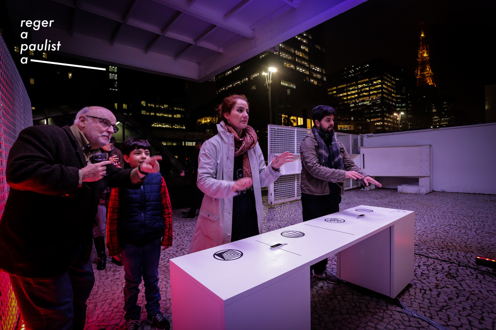 Reger a Paulista is a large scale interactive experience where up to 4 participants conduct visual and sounds in the facade of FIESP building in Sao Paulo. The experience happened from 16/8/2018 to 16/9/2018.